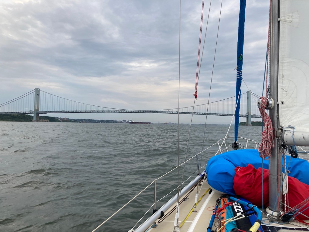 We were really excited because had the run up the coast not been so fast, we would have had to anchor in NY Harbor for 6 hours to wait for the favorable current up the East River. But fortunately, we hit it exactly right as the current was starting it max just as we hit the river and we rocketed through at mostly 9 and up to 11 knots. It was really fun seeing the bridges and other sights from the water, something I had not seen before.