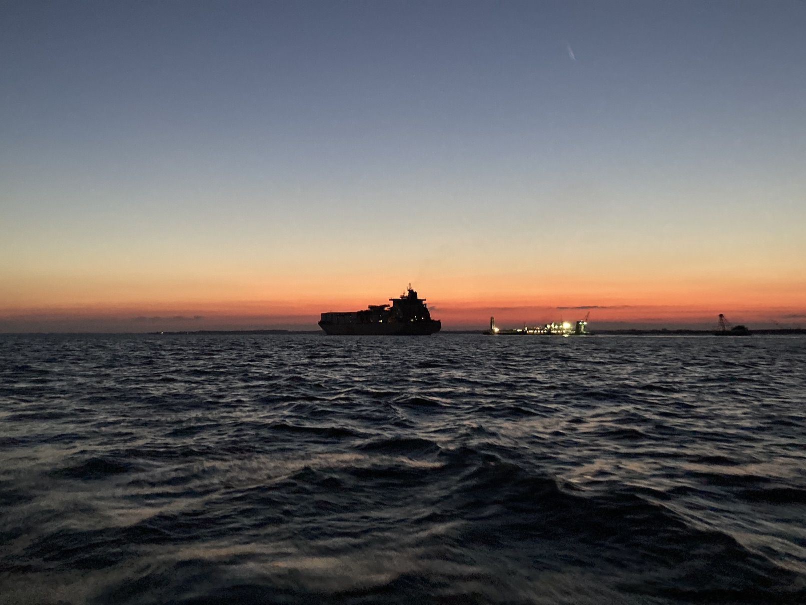 Our plan was to stop midway in the canal at the Summit North Marina for the night and leave at 3am just before the tide turned. We had a nice dinner at the restaurant there and hit the sack ready for the early morning. We bucked a little current in the first hour but once it turned we had a good boost out the canal and down the bay and we were greeted with a beautiful sunrise.