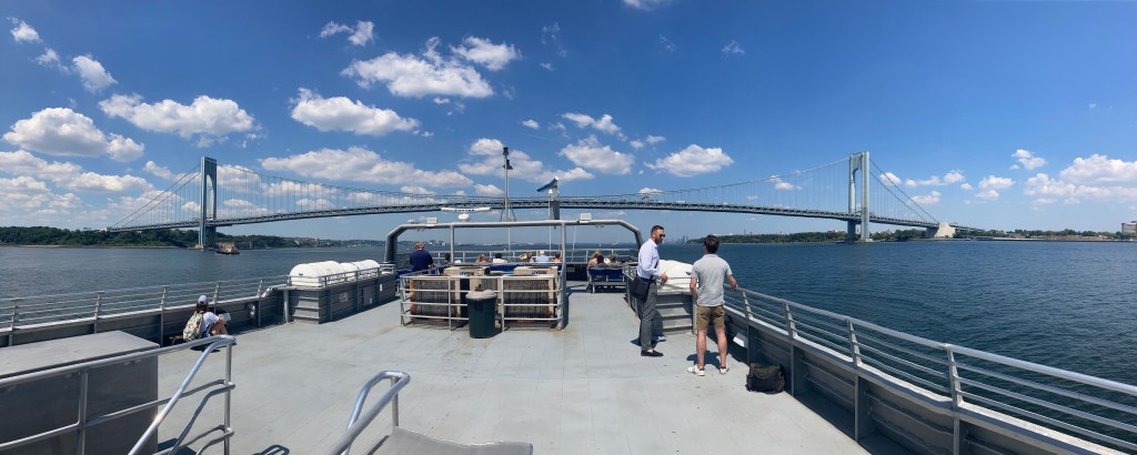 Overnight was a beautiful night and it cooled way off after the mild cold front. I had a lot of time to get to the ferry to NYC at Highlands (Sandy Hook) as the only one I could reasonably make was at 12:20p and it was an easy 30 miles. Since I had no gas for boiling water, I ended up having a great egg sandwich on the beach in Belmar. But the ride up the coast was really nice, Spring Lake is definitely where the rich people live. I did ride some more boardwalk in Asbury Park, because, well you kind of have to so you can get the trite photo saying “Greetings from Asbury Park, NJ”. By this time I was already hot and messed up the quote on Facebook. Sigh… In Long Branch, the nice beach avenue turned into STROAD hell. They appear to be all in on high density auto-oriented development. Blech. But, finally got to Sandy Hook and crossed over the Highlands Reach bridge into the small town of Highlands where the ferry terminal is. Sadly, I didn’t have my National Park pass so couldn’t ride into Sandy Hook National Park (I tried to get a camp site there but no dice).