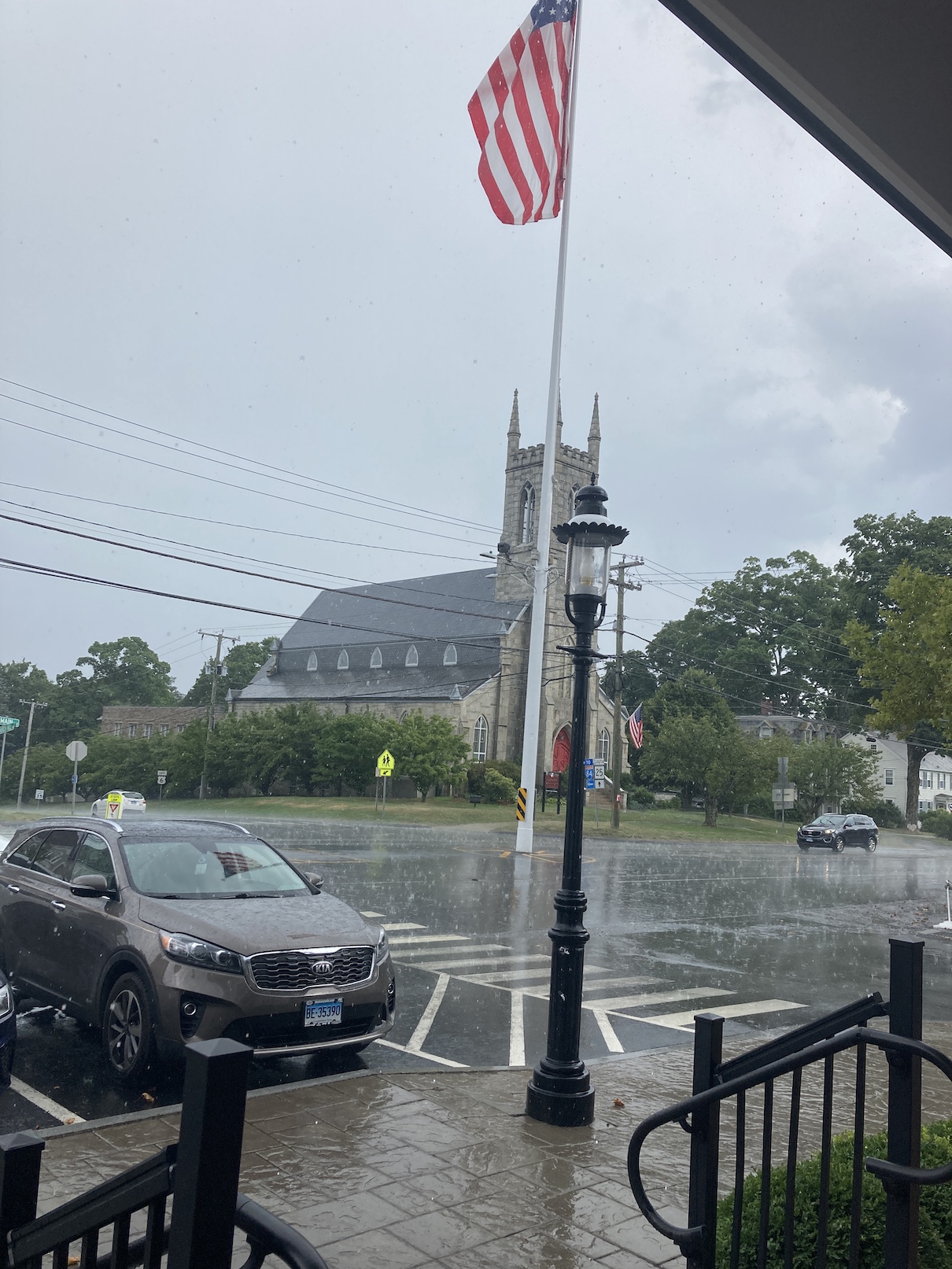 In Brewster I basically took a right and paralleled I-84 through Danbury, Newtown, Sandy Hook and eventually into eastern Waterbury where Quassy is located. I routed on as many small roads as possible and I (again) never sanity checked it. Many of the roads had the word “Hill” in the name, which is as you’d expect, hilly. But at least they were not heavily traveled and really started to have that “New England” look and started to feel like home. Coming into Newtown, there was a huge thunderstorm which I waited out (mostly) under an awning. Quite the cute little town. When it cleared, I continued on to Quassy. In the last few miles there was one hill that was really ouchy at 11% and I’m really glad I did not have my full rig. Might have been a hike-a-bike. I rolled into Quassy after 74 miles and 5:32 pedaling time and 6:38 elapsed. This day had the most vertical gain at 3900′. Not that much by hilly standards, but after 400 miles, it was tiring. A swim in the lake and few beers was just what the doctor ordered.