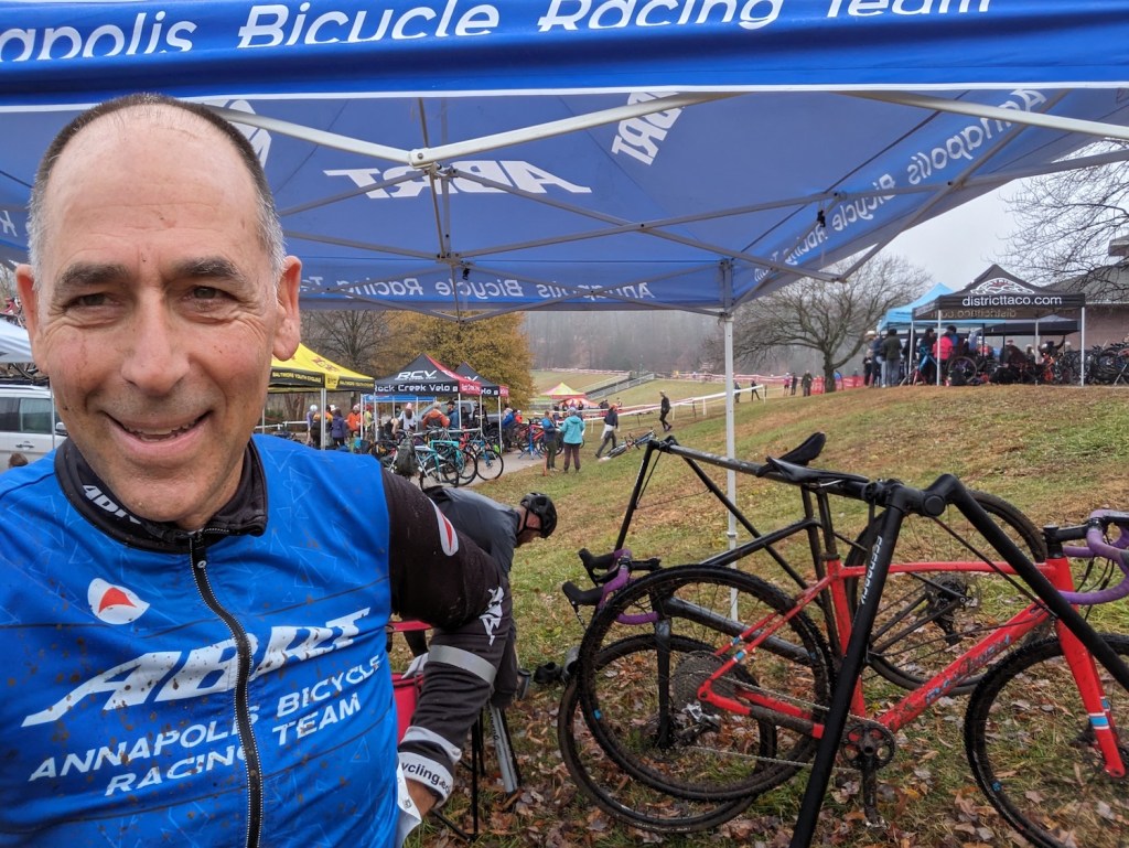Except for the Hyattsville 60+, I did all 40+/45+ 3/4/5 events which are my favorite with large fields and no former pros and even though I am always the oldest guy in the race, it’s good racing for me. For my results, I finished with points about the same as last year (501.92 this year v. 497.53 last year – crossresults.com has all the stats), but my goal is generally to finish on the lead lap (mostly successful), get points in the 400s (lower is better, limited success) and beat the race predictor based on the points to date, which I did for every race I preregistered. I had hoped to do at least 10 races this year, but again due to the minor injuries, I missed Germantown, Rockburn, Frosty Cross and Tacchino as well as AACX and Ed Sander due to Snipe conflicts. Even retired, I still have conflicts. Sheesh, but I guess not a bad problem to have!