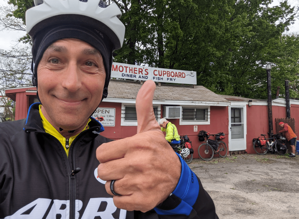 We left Utica with chilly temps and rain but found a nice breakfast place in town. There was a bit of road riding in the rain leaving Utica and directly to the east, but the rain mostly tapered off as we entered the heart of the Mohawk Valley where the scenery was definitely different and much more mountainous. I was pretty cold so again rode ahead skipping the lunch stop to stay warm opting to eat lunch at the Village Restaurant at the end in Canojoharie.