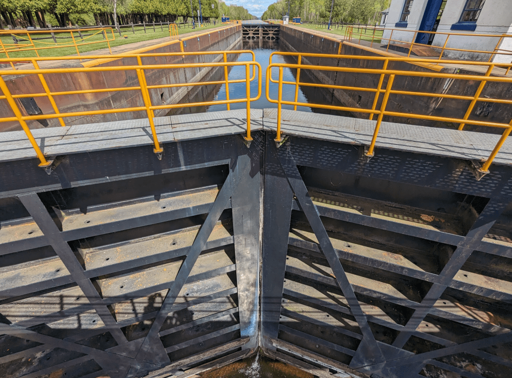 Once we got back to the modern canal alignment, we were treated to a private lock demonstration at Lock 21 as they were doing some testing prior to the start of the season. They drained a basin and opened a set of doors for us. Very cool.