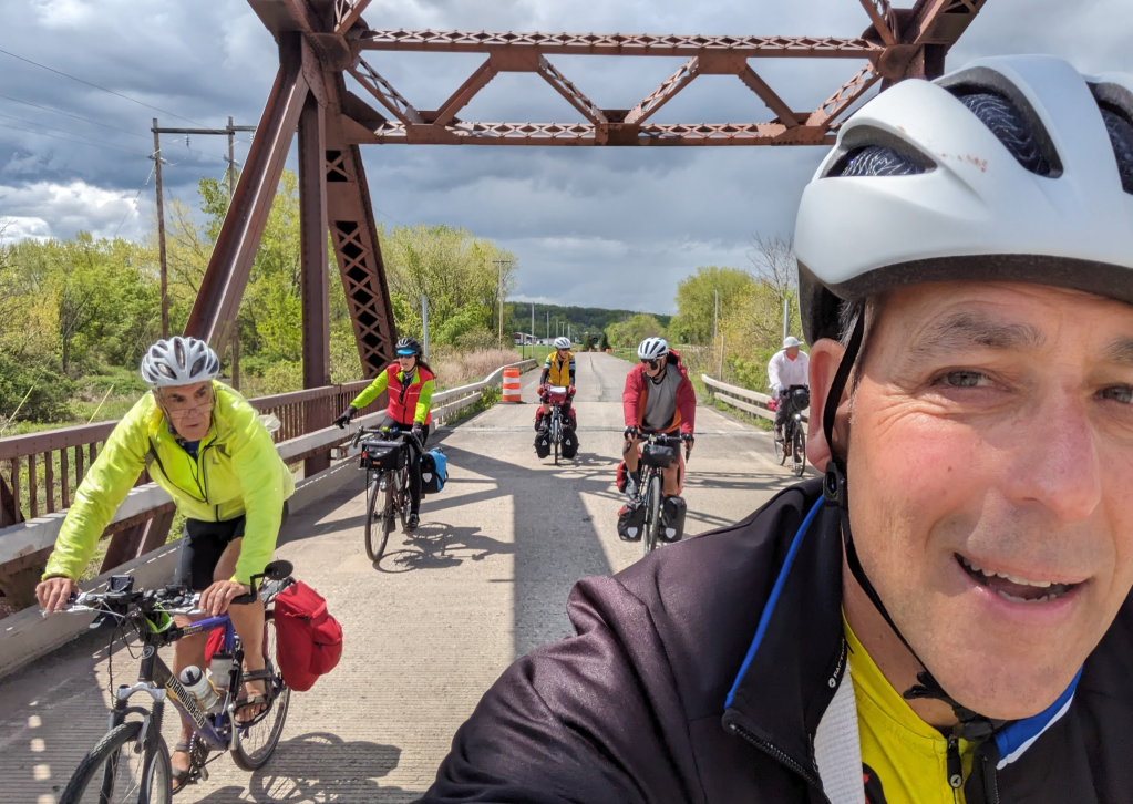 On the way out of Rochester, we were off the trail, but went right through downtown and were treated with smells of Genesee Beer and great rainbows at the falls along the Genesee River. The weather was a bit nicer and the sun came out in the afternoon with temps in the 70s. It was perfect riding. There were a few cute little towns like Fairport where we met a companion, who lives in the area, for the rest of the ride. There was a bit of road riding after lunch (I was still burping up my omelet so did not have anything) and went off the front with Henry who also wanted to get his heart rate up. We arrived in Clyde about an hour before the rest of the group and sat in the local park having an IPA wrapped in a leg warmer (the cyclist version of a brown paper bag). The Air BnB was a “walkup” apartment, pretty cool. But Clyde looks like it doesn’t get much love these days. If you wanted to by a cheap building to do whatever (as long as you don’t need local customers) there’s lots of unoccupied commercial space! The only place open for dinner was a takeout Chinese restaurant, bit it had a few tables so we were able to eat the takeout in. It was good, but I think I over did it on the chilis in my Szechuan Beef though… 🚽