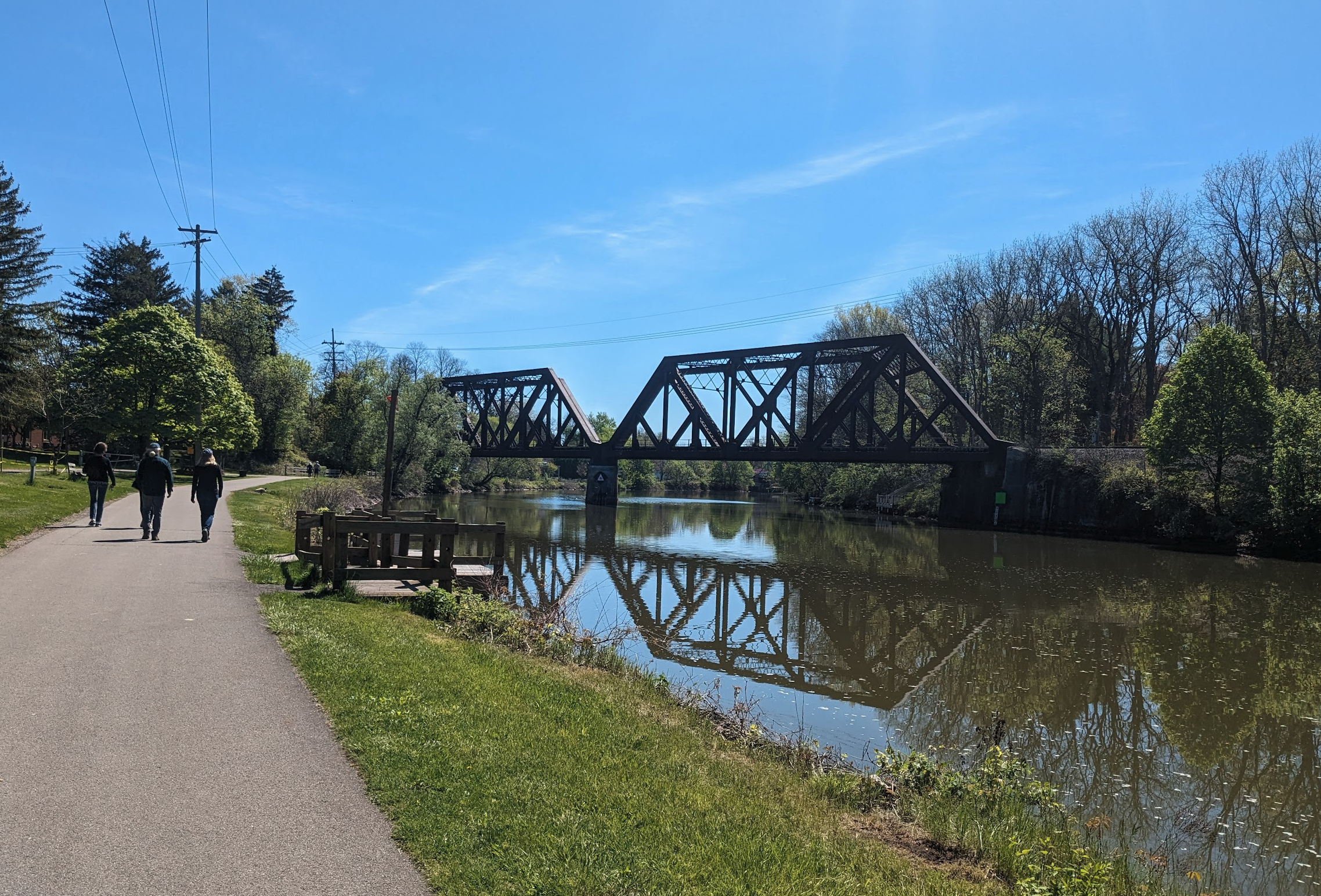 Eventually we picked up the canal towpath trail proper and rolled through some cute little towns, stopping for lunch at a “crab shack” kinda place along the canal and finally ending the short day in Lockport where we got some cool views of the locks there.