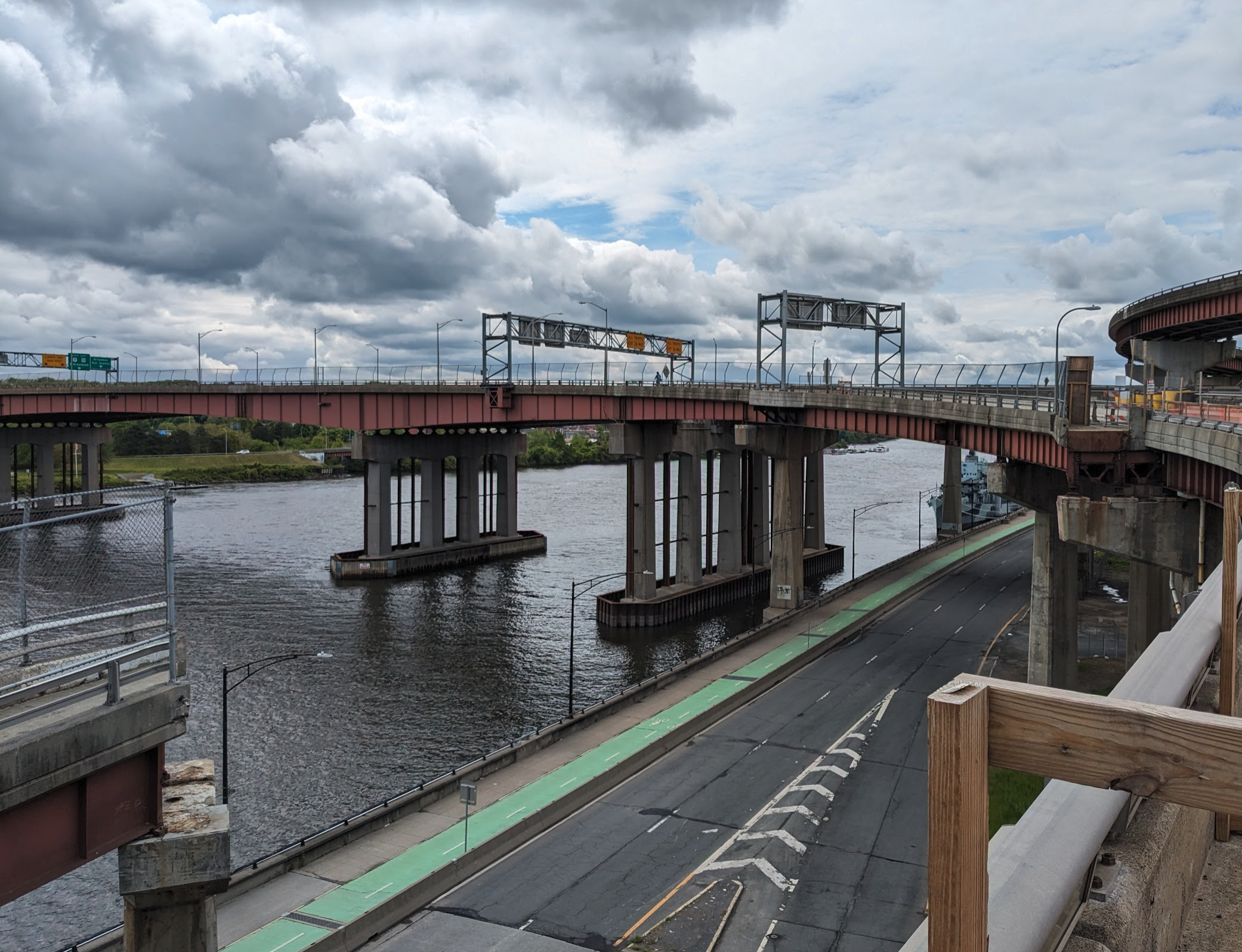 Crossing over the river there was a trail bridge out and we were routed on a temporary path made out of a jersey barrier. It had a lot of crap in it and when I stopped to take a picture on the bridge I must have run over something really sharp because I was spewing sealant out of my back tire when I got off the bridge, ironically 100 yards from the train station. I thought it might seal itself, but it was just a little too big, so I eventually got a dart into it and pumped it back up. All good.