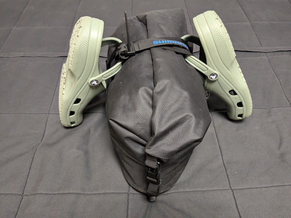So far it’s performed at least as well as my underseat pack but with more volume and much easier to pack/unpack. I have heard people complain that it causes “wobble” but I think that is a wrong characterization. A “wobble” is an unstable oscillation (ie it grows which is really bad). I have found that because the weight is all transferred into the through axle and there is a lot of weight on the handlebars, the bike actually flexes a bit laterally, and I think that is what people are reacting to and calling it a “wobble”. I’ve hit speeds of 40+ mph and it’s been very stable so I am not worried about it. When you get out of the saddle, you do have to be careful not to wave the bike side to side as it can exacerbate that lateral flex, but that’s not really any different from how you have to handle the bike with an underseat pack.