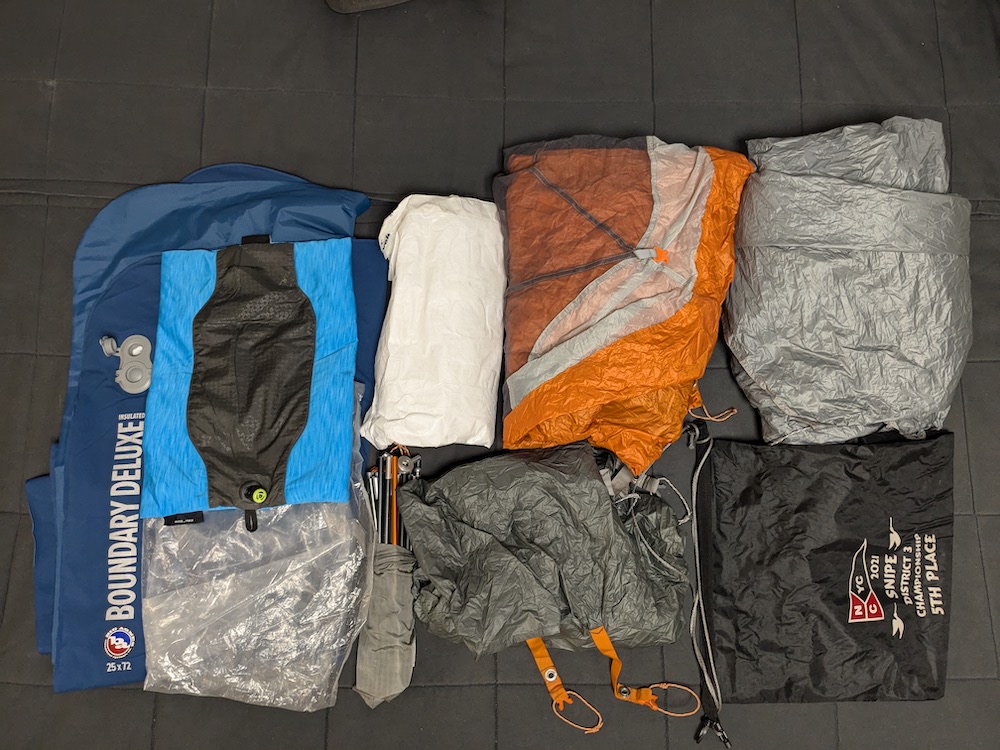 This is the fun part. For context, this is everything I think I need for a trip of indefinite length in a temperate summer climate (40 degrees +), assuming resupply at least every 3 days. I do need to add a water filter as I can not currently do that. Obviously if you are in colder areas with bad weather, more will be needed, especially a sleeping bag that is not just a “quilt”.