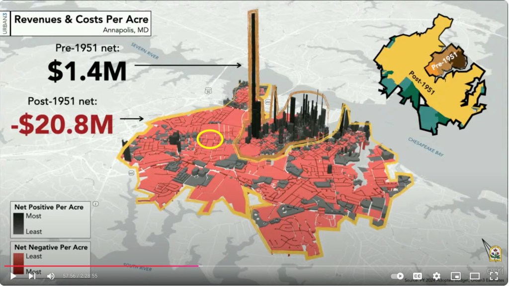 The standards – a traffic study, larger lot, major site plan – very much favor well capitalized projects that are likely to be high profit producing and not locally owned. As noted in the staff report, typically chain fast food restaurants (an extractive industry). Other standards are so squishy, almost any argument using modern traffic engineering arguments could satisfy them, but again this results in an auto oriented development pattern. That is not what is put forth in the Comprehensive Plan and ultimately devalues the surrounding land, just look at upper West Street an argument I made a long time ago in my Ignite Talk and was explicitly highlighted in a study Urban3 did on the development pattern productivity in Annapolis.