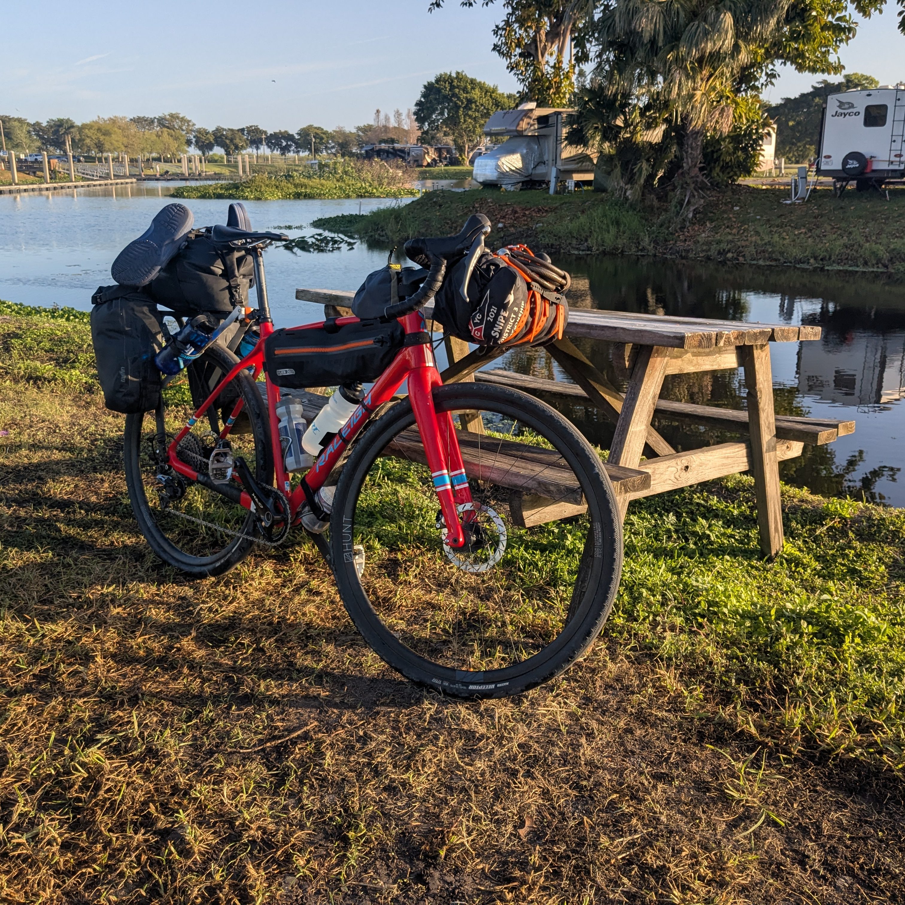 On the technical side, everything on the bike worked very well. I switched up where I put things, opting to swap the cooking equipment to the front and the tent to the back to keep the small back panniers lighter and balanced. I very much liked this change. I also got a new tubeless tire repair tool Dynaplug Dynaplugger Tubeless Tire Repair Kit, which works very well. I had a chance to test it coming into the city of Okeechobee when it hit something in the road that caused a hole that wouldn’t self seal. I even needed two plugs to seal it, but it was quick and easy and I had no problems with the plug(s) for the last two days of the trip. Another new thing is I purchased the Silca Chain Waxing System, mostly for my mountain bike to keep the chain clean. But since I have it, I’ve done all my bikes and for this trip it was PERFECT. I didn’t have to do any lubing and it was very clean after the seven days despite the sandy conditions. I’m very glad I did this.