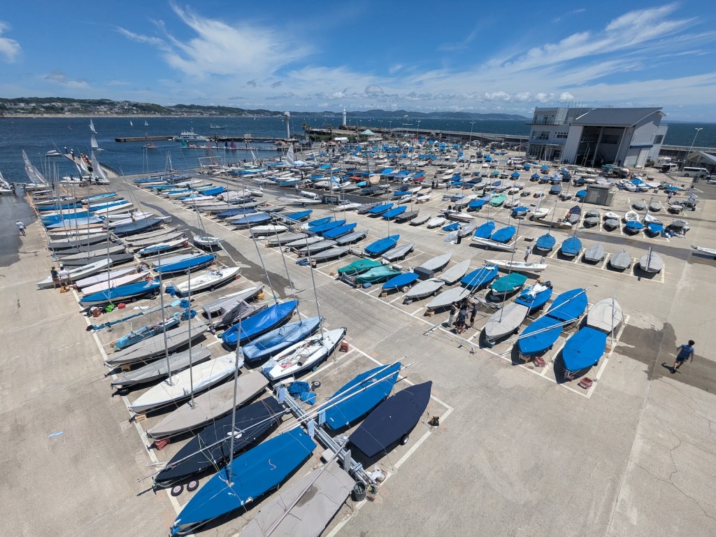 We Arrived in Enoshima, did some touring of the local area and prepared the charter boat (a 2023 Jibetech!). Lisa and Lexi practiced every day, just enough to get familiar with the boat and the really windy conditions. This was a great lesson learned: get there early, take your time, practice every day going through the motions of prep/launch/sail/debrief to establish the rhythm so that when the event starts, everything is sort of old hat. But don’t sail so much you get too tired or burned out, just enough to get in the groove. That was less than an hour sailing a day. The Enoshima Yacht Harbor was a fantastic venue built originally for the 1964 Olympics and renovated for the 2020 games.