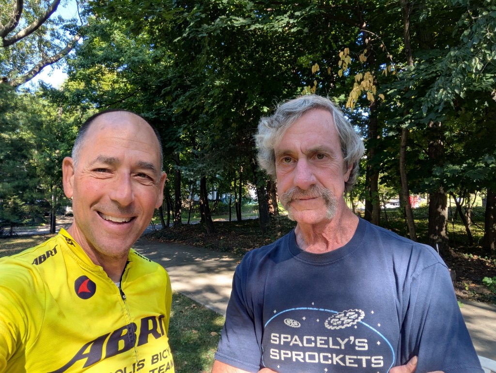 I hung out in Cleveland Sunday through Tuesday with Terry. Sunday we did a water-based tour up the Cuyahoga River and stopped at Merwin’s Wharf for cocktails. I am continually amazed at the development downtown. If I were a young guy, that is definitely where I would live! On Monday I did a nostalgia tour on the bike from downtown to CWRU (my alma matter) and out to visit my NASA colleague Paul Greenberg in Cleveland Heights for a few hours. On Tuesday I did an unloaded ride around Elyria/Lorain from Avon. It was very relaxing and a great opportunity to spend time with Terry and his family (we were each others’ best men). Lisa arrived with the van and boats Tuesday afternoon and we headed to Green Lake Wednesday morning.