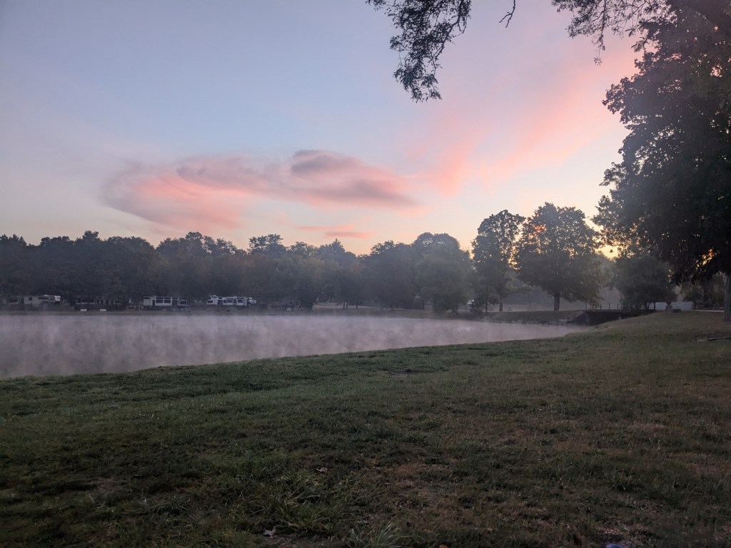 The road riding ended in Zoarville where I pickup op the Ohio & Erie Canal towpath, essentially the northern part of the Ohio to Erie Trail (OTET), the aforementioned branding overlay. My online scouting of this in prior years yielded little information about the condition, but it was very nice. A little single tracky in places but was still very pleasant especially since it was dry. I stopped at the Towpath Tavern in Bolivar for a great lunch hitting the Valade rule on the head today, a lunch stop at 2/3 of the day’s miles. To end the day I continued on the towpath all the way to Canal Fulton to the Jellystone RV Park. I’ve stayed in a lot of RV parks when bikepacking in the past, but this one is an all-time low, only because it’s really not set up for somebody like me riding in on a bike without a car full of camping crap. There was no picnic table and no place close to charge your phone, the shower water was sulfury well water, the porta potties near the tent site were nasty and to boot it cost me $100 just to pitch my tent. I hate to go down an urbanist rant here, but that park was the suburban version of RV Parks, very spread out and you really needed a golf cart to get around. Basically, a disney like version of suburbia rather than a disney like version of a city and I have a hard time understanding why anyone who lives in suburbia would go spend their time in, well, another version of suburbia, just with less space in a 5th wheel RV, a golf cart and a stinky campfire. It makes no sense to me. The only saving grace for me is they have a bar so I at least got a beer (of dubious quality to add insult to injury).