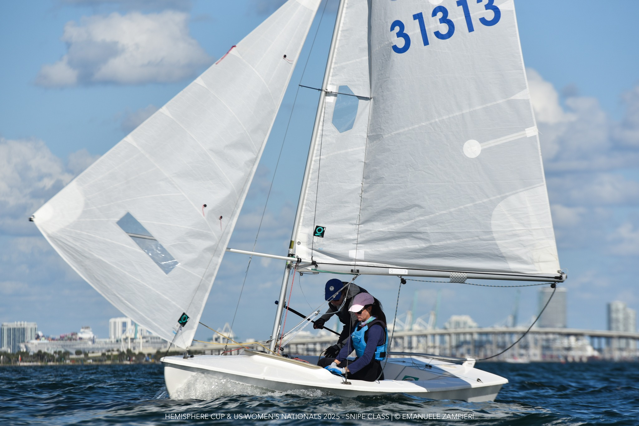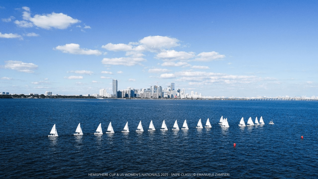 Another fun time at the 2025 Bacardi Invitational. We love this event for the “high production value” and the multi class nature which lets us hang out with many friends from the wider sailing community. This year, we had our own circle with three solid days of racing with the first day 15-20+ and very shifty from the NW followed by 2 days of lighter typical Biscayne Bay SE breeze. I think our circle had the most racing and best conditions of the three days. We ended up above the fold at 8th. We were going well, just made too many mistakes that often dropped us out of the “A” group – you can’t get away with mistakes in that crowd! – and 8th was sort of the best of the rest. For the first time, the Snipe Class tested the Vakaros Race Sense system and I believe it was very successful. Definitely still some kinks and policy issues to be worked out and hopefully the cost of such systems will come down, but I think overall a great improvement to race management. Lisa was going to steer, but we switched at the last minute and we ended up 8/16, shocker.