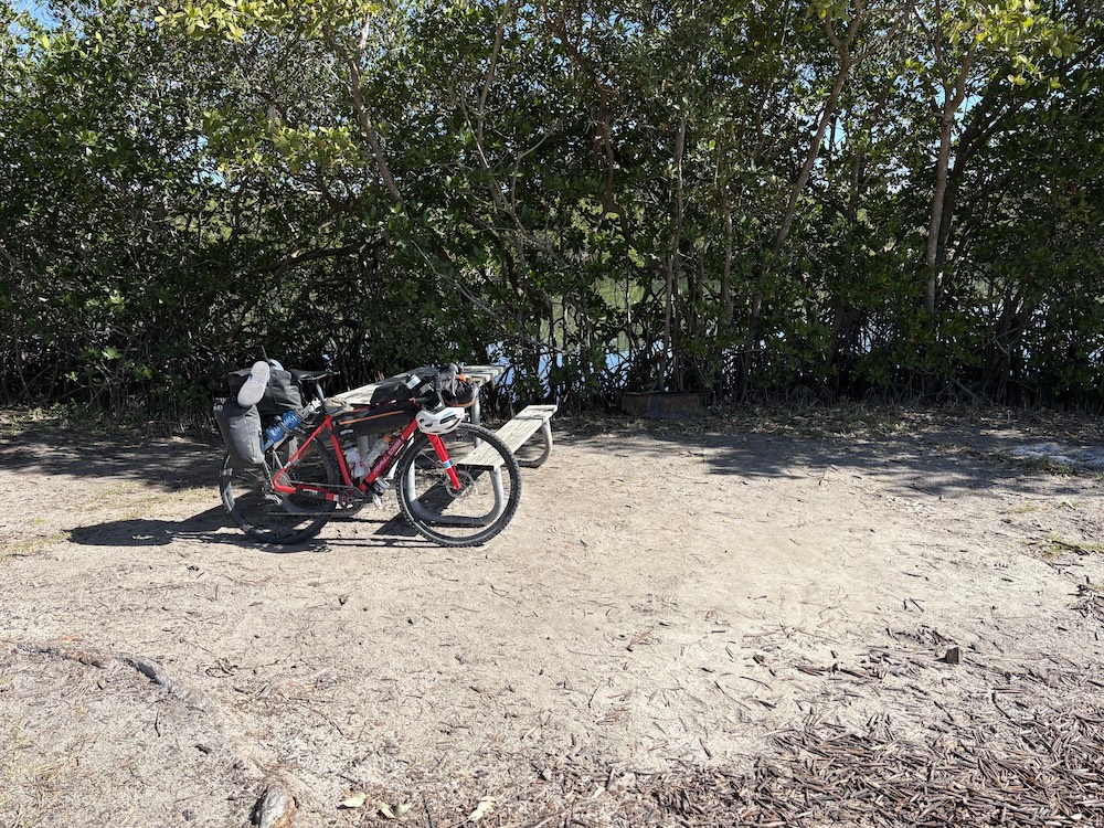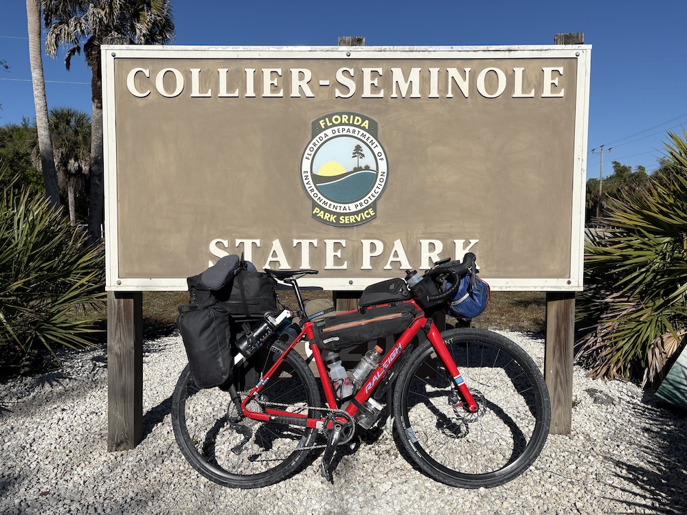 | 2 | Collier Seminole State Park | 50.5 | 3:58 | A little shorter day today as I called an audible and stayed on US41 (aka The Tamiami Trail – the OG Alligator Alley) eschewing any additional gravel that was likely to be a slog. The first 3-5 days are the worst as everything hurts, nice to be at a full service campground with a hot shower and cleaning my kit. And plenty of drinking water which is an issue at primitive sites like last night. Another backpacker meal night. |